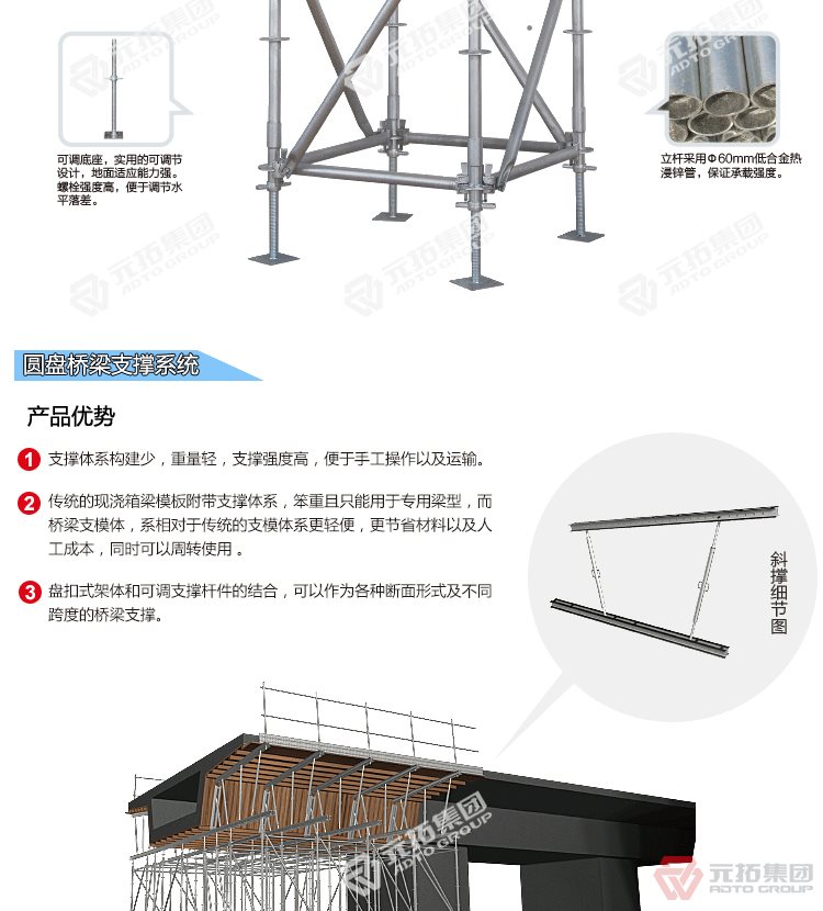 腳手架批發(fā)找元拓,天津和順昌是元拓集團天津工廠直銷盤式腳手架,圓盤式腳手架具有基本構(gòu)件少、架設(shè)及拆卸作業(yè)方便、施工工效高、承載力強等特點,被廣泛應(yīng)用于橋梁、隧道、電力、石化、造船、鐵路、機場、碼頭等工業(yè)及民用建筑的工程領(lǐng)域。相對于鋼管扣件式腳手架和碗扣式腳手架,圓盤腳手架有不可替代的優(yōu)勢。