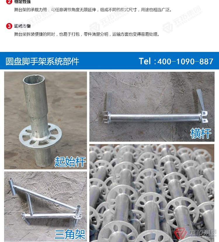 橋梁專用承插型盤扣式腳手架,圓盤式腳手架具有基本構(gòu)件少、架設(shè)及拆卸作業(yè)方便、施工工效高、承載力強等特點,被廣泛應(yīng)用于橋梁、隧道、電力、石化、造船、鐵路、機場、碼頭等工業(yè)及民用建筑的工程領(lǐng)域。相對于鋼管扣件式腳手架和碗扣式腳手架,圓盤腳手架有不可替代的優(yōu)勢。